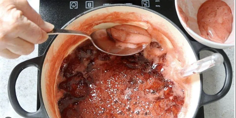 Don’t Overdo It: Avoid boiling for longer than 25–30 minutes. If you overcook it, the sugar starts to caramelise, turning your jam a dark, dull colour and giving it a “burnt” taste. It is better to test early and often!