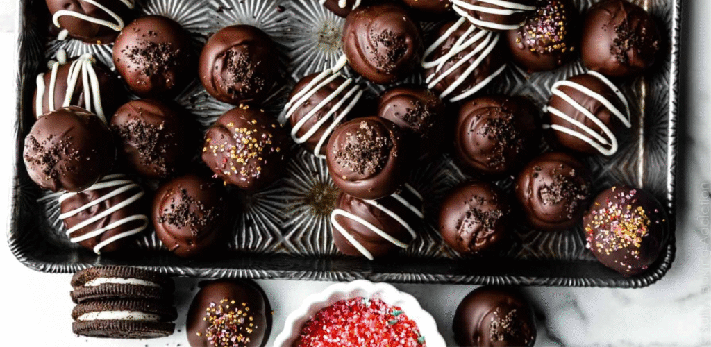 These easy no-bake Oreo balls are the perfect thing to bring to share. They are easy to make, fun to decorate and are the perfect bite size pieces. You can add sprinkles, chocolate drizzle, or more Oreo crumbs on top to create an easy but professional finish to them.