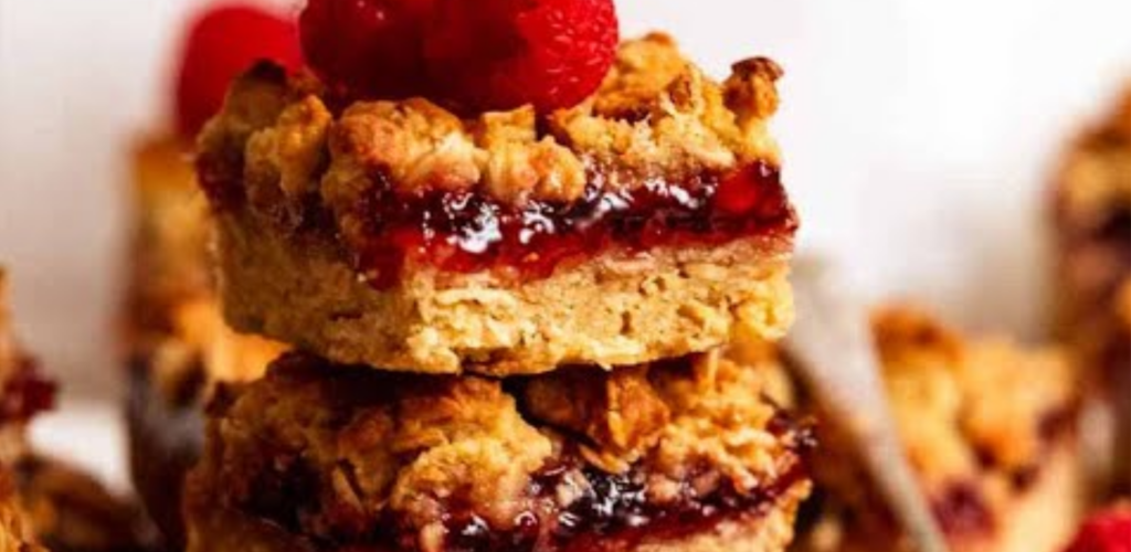 The bars are easy any quick to get into the oven, and you can substitute the raspberry jam for any other flavour you like.
